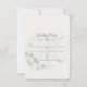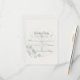 The front features a gently faded sand dollar watermark, graceful script for “Kindly Reply,” and refined form lines for guest responses. Subtle watercolor eucalyptus adds a fresh botanical touch that complements beach, shoreline, and destination weddings beautifully.
