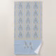 Coastal Seahorse Cameo Blue Cream Strip Monogram Beach Towel