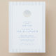 Elegant baptism invitation design featuring a hand-painted blue and white shell on a soft blue background. Subtle blue-beige stripes add depth, while the mix of sans-serif and decorative serif typography creates a timeless, coastal feel—perfect for classic, minimalist, seaside-inspired baptisms. The shell represents an old baptism symbol that was used to pour the water.