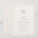 Elegant baptism invitation design featuring a hand-painted pink and white shell on a soft beige background. Subtle pink-beige stripes add depth, while the mix of sans-serif and decorative serif typography creates a timeless, coastal feel—perfect for classic, minimalist, seaside-inspired baptisms. The shell represents an old baptism symbol that was used to pour the water.