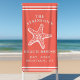 Coastal Starfish Beach House Family Name Coral Beach Towel. Personalise this custom design with your own family name, year established, city and state. The perfect summer beach towels for your family lake house, cottage, or beach house.