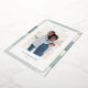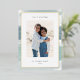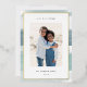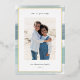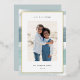 Chic coastal style holiday card adds nautical flair to your Christmas greetings. Perfect for sharing a vacation photo, or for families who live in coastal, tropical, warm weather or island locales, this elegant design features your favourite vertical photo with a border of sea green watercolor stripes and gold foil trim. Add your custom holiday message (shown with "seas and greetings") and your names or family name.