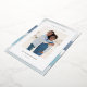 Chic coastal style holiday card adds nautical flair to your Christmas greetings. Perfect for sharing a vacation photo, or for families who live in coastal, tropical, warm weather or island locales, this elegant design features your favourite vertical photo with a border of ocean blue watercolor stripes and silver foil trim. Add your custom holiday message (shown with "seas and greetings") and your names or family name.