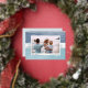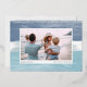 Chic coastal style holiday card adds nautical flair to your Christmas greetings. Perfect for sharing a vacation photo, or for families who live in coastal, tropical, warm weather or island locales, this elegant design features your favourite horizontal or landscape orientated photo on a background of blue and sea green watercolor stripes, with a sprinkle of silver foil at the top and bottom. Add your custom holiday message and your names or family name.