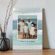 Chic coastal style holiday card adds nautical flair to your Christmas greetings. Perfect for sharing a vacation photo, or for families who live in coastal, tropical, warm weather or island locales, this elegant design features your favourite photo on a background of sea green watercolor stripes, with a sprinkle of silver foil at the top and bottom. Add your custom holiday message (shown with "seas and greetings") and your names or family name. Personalise the back with three additional photos.