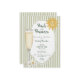 This whimsical coastal petals and prosecco bridal shower invitation features a vintage sun motif, lace border, palm trees, and stylish sage green stripe background. Perfect for a beach or California destination wedding theme event. Created by Simply Farmhouse Press.