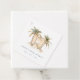 Complete your coastal celebration with this personalised favour tag by Redwood & Vine Design Co. The design showcases softly painted palm trees, sandy shore, and three surfboards, paired with customisable event details in a modern serif font. Perfect for tying onto gift bags, jars, or boxed treats, these tags are ideal for tropical, surf, or beach-themed showers and coordinate perfectly with matching coastal stationery and décor.
