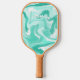 This teal and white pickleball paddle has a coastal look and the ability to be customised with your name on the front and the back. Can also be changed to your initials only.