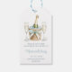 The perfect gift tag for your beach wedding features a light and airy coastal design. This design has a watercolor image of a sparkling bubbly bucket with two glasses. Colors used include, slate blue, forest green, ivory and tan.
