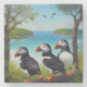 Coastal Trio: Three Puffins at the Beach in Oils Stone Coaster