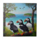Coastal Trio: Three Puffins at the Beach in Oils Tile