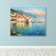 A canvas representation in the impressionist pictorial style of a seaside village with a direct view of the sea.
