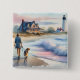 Coastal Walk to Lighthouse at Sunset 15 Cm Square Badge