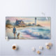This dreamy coastal artwork captures a tranquil moment at the shoreline, where a woman strolls barefoot with her dog, the soft pastel tones of the setting sun casting a warm glow on the sand and sea. A charming beach house sits nestled among windswept grasses, its porch inviting and timeless, while a stately lighthouse watches over the horizon. Gentle waves roll in with watercolor softness, and hints of blush pink, misty blue, and sun-kissed gold give the scene an ethereal, nostalgic quality. The entire composition evokes slow living, serenity, and the quiet magic of coastal escapes. With a relaxed, coastal cottagecore vibe and a soft, painterly style, this piece blends warmth and whimsy in perfect harmony. AI generated artwork.