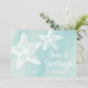 Elegant Beach Seasons Greetings 'Seas & Greetings' Blue Watercolor Starfish Holiday Card. A fun play on 'Seasons Greetings' with 'Seas & Greetings' (you can change to the classic words if you want). Cute and simple modern beach themed print. A teal blue watercolor background with white starfish straight from the ocean! You can of course change all of the text and font colours, and you can even change the colour of the starfish! Whether you are from a tropical location like Florida, Hawaii, Bahamas or just love the ocean vibe, these will be a hit!