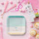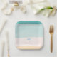 These coastal-inspired paper plates bring a soft, relaxed feel to summer gatherings. Featuring a watercolor wash of ocean blues and sandy tones, the design captures a calm beach scene with a delicate striped umbrella and small dog resting along the shore.