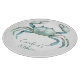 This round glass cutting board features a beautiful coastal crab in soft watercolor shades of blue and green on a solid white background. Personalize with your choice of name or special text. Makes a great hostess gift.