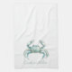 This fun kitchen dish towel features a beautiful coastal crab in soft watercolor shades of blue and green on a solid white background. Personalize with your choice of name or special text.