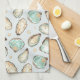 This coastal chic kitchen towel features soft cream and aqua watercolor oyster and pearl illustrations. Perfect for beach houses, coastal abodes, or anyone who loves oysters and fresh shellfish.