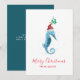 Coastal Watercolor SeaHorse Christmas Holiday Card