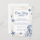 Show your appreciation with this elegant Nautical Rehearsal Dinner Thank You Card. This design is great for a Coastal Wedding, featuring a popular navy blue and faux gold glitter theme with watercolor starfish and a jellyfish. The card features a heartfelt message (which you can personalize with your own text), and includes the phrase "One Day Away." Perfect for sending thanks to guests who attended the pre-wedding celebration at a yacht club, beach, or seaside venue. An essential piece of Nautical Chic stationery to complete your wedding rehearsal dinner.