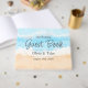 Pretty blue and teal ocean waves on a sandy beach Coastal themed Personalised Wedding Guest Book.