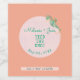 Soft dusty coral ticking stripe background with floral seahorse element. Seahorse shape filled with tropical bloom and foliage. Coastal Bridal Shower favors with custom name, event, and date. Personalize with your message at the lower border of the label.