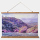 This Wood-Topped Wall Tapestry features vivid colours, crisp lines, and a rustic open wooden frame.