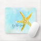 Coastal Yellow Starfish Aqua Watercolor Mouse Mat