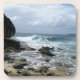Cork coaster set shown with a photo print of the beach in beautiful Kauai.