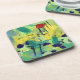 Set your glass down in artistic style with these abstract art coasters in the yellow and green Field and Meadow design.