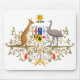 This design features the Australian coat of arms. Australia is a sovereign country comprising the mainland of the Australian continent, the island of Tasmania and numerous smaller islands. Australia's capital is Canberra, and its largest city is Sydney. The country's other major urban areas are Melbourne, Brisbane, Perth and Adelaide. The coat of arms of Australia, officially called the Commonwealth Coat of Arms, is the formal symbol of the Commonwealth of Australia. A shield, depicting symbols of Australia's six states, is held up by a kangaroo and an emu, which are both animals native to Australia. The seven-pointed Commonwealth Star above the crest also represents Australia's states and territories, while various floral emblems appear below the shield.