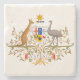 This design features the Australian coat of arms. Australia is a sovereign country comprising the mainland of the Australian continent, the island of Tasmania and numerous smaller islands. Australia's capital is Canberra, and its largest city is Sydney. The country's other major urban areas are Melbourne, Brisbane, Perth and Adelaide. The coat of arms of Australia, officially called the Commonwealth Coat of Arms, is the formal symbol of the Commonwealth of Australia. A shield, depicting symbols of Australia's six states, is held up by a kangaroo and an emu, which are both animals native to Australia. The seven-pointed Commonwealth Star above the crest also represents Australia's states and territories, while various floral emblems appear below the shield.