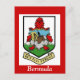 The coat of arms of Bermuda depicts a red lion holding a shield that has a depiction of a wrecked ship upon it. The red lion is a symbol of England and alludes to Bermuda’s relationship with that country. The wrecked ship is the Sea Venture, the flagship of the Virginia Company. The ship was deliberately driven on to the reefs of Bermuda, by Admiral Sir George Somers, in 1609, to prevent it from foundering in a storm. All aboard survived, resulting in the settlement of the island. The Latin motto under the coat of arms, Quo Fata Ferunt, means “Whither the Fates Carry [Us]”. In the twentieth century, the coat of arms—without the banner holding the motto—was added to the Red ensign to create the distinguishing colonial flag (the national flag is the Union Jack, which appears in its upper, left corner), and on the Governor's Flag. The coat of arms features on the cover of the 1624 edition of The Generall Historie of Virginia, New-England, and the Summer Isles (the Somers Isles is another name for Bermuda, commemorating Admiral Somers), by Captain John Smith. The Bermuda old badge before 1910. The badge was based on a sketch, made in 1869, of the 1817 seal, which depicted a wet dock of the time showing with some boats in the background. It is assumed that the scene alludes to the fact that the islands were a stopover base for the sailing ships[1] when the badge was approved by the Admiralty.