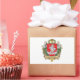 Sticker with design with design with coat of arms of Vilnius, capital city of Lithuania; with illustration of saint Christopher and infant Jesus