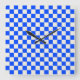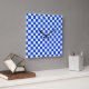 A blue and white checkerboard pattern with alternating squares fills the image, creating a geometric, balanced design with a classic, symmetrical feel.