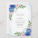 This design features a romantic watercolor palette of deep cobalt and royal blue roses contrasted with soft blush pink blossoms. Delicate green leaves and sprigs of white baby's breath surround the composition, creating an ethereal and airy atmosphere. Ideal for an elegant springtime or summer soirée, the artwork exudes a sense of timeless sophistication and natural beauty.