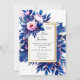 Cobalt Blue Blush Pink Floral Elegant Wedding Invitation