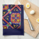 Cobalt Blue Burnt Orange Southwestern Tile Design Tea Towel