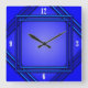 Cobalt Blue Double Frame 4 White Numbers Square Wall Clock