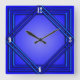 Cobalt Blue Double Frame 4 White Numbers Square Wall Clock