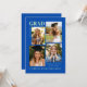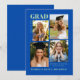 Celebrate your graduation with this cobalt blue background Modern Graduation Announcement Card with Photos. Designed with a sleek, contemporary layout, this card features space for four photos, allowing you to share your favorite senior moments in one stylish design.