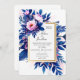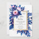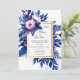 Cobalt Blue Pink Floral Modern Elegant Wedding Invitation