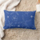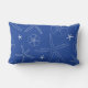 This lombar throw pillow features a white illustrated line pattern of starfish and sand dollars. The background is cobalt blue, but can be changed to any colour of your choice. Perfect for beachy, coastal or nautical theme decor.