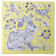 Cobalt Blue Yellow Rabbit Bird Woodland Floral Tile
