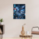 Fast, sleek, and elite, this cobalt falcon artwork captures a futuristic predator diving through the night sky with cobalt alloy plating, carbon-fiber wings, glowing blue eyes, and razor-sharp aerodynamic detail. Below, a neon skyline glows with skyscrapers, holographic lights, transit lanes, and atmospheric haze. Motion trails and dramatic depth create thrilling speed and precision. Ideal for gaming rooms, offices, and modern interiors. Perfect for fans of cyber style, birds of prey, and futuristic décor.
