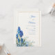 Invite your guests into a world of botanical elegance with this stunning hand-illustrated design. Vibrant cobalt blue muscari, or grape hyacinth, stand tall against a dense spray of delicate sky-blue wildflowers and slender green foliage. A thin, shimmering gold rectangular frame anchors the composition, providing a modern and refined touch. The background features a warm, ivory-textured paper effect that mimics the feel of high-quality watercolor cardstock. The combination of rich, punchy blues and soft organic textures creates a fresh and sophisticated garden vibe that is perfect for an upscale celebration. This botanical layout is a premier choice for a classic spring garden wedding or a serene outdoor ceremony. The striking cobalt and soft blue palette makes it a flawless fit for coastal or nautical celebrations, echoing the colors of deep water and bright skies. Beyond the main event, this design works beautifully for a sophisticated bridal luncheon, an elegant morning engagement party, or a whimsical garden-themed rehearsal dinner. It pairs effortlessly with wedding colors like navy blue, metallic gold, sage green, and warm ivory.