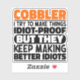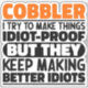 Funny Cobbler Sayings "Cobbler I Try To Make Things Idiot Proof But They Keep Making Better Idiots". Grab this Funny Cobbler design as a funny gifts for an awesome mum, dad or friend.