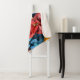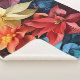 The print features flowers in intense shades — red, gold, blue, and orange — creating an elegant and lively look. Each petal seems to gain relief and depth, giving the piece a unique artistic effect.