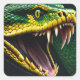 Menacing cobra snake with vibrant green and yellow scales showcasing its terrifyingly large fangs and a venomous glare.artificial intelligence art